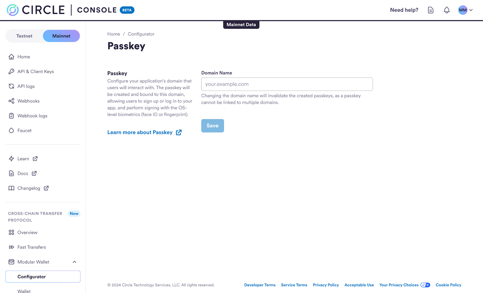 Perform the steps below to create your client key.- Login to the Circle Console, navigate to the