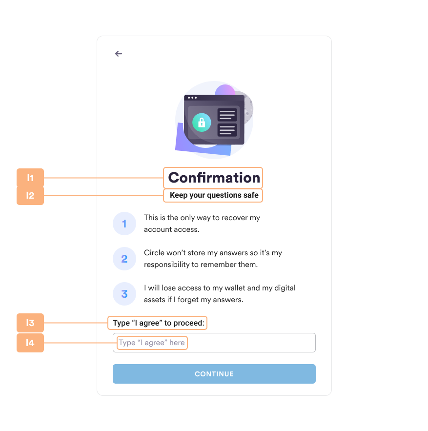 | B3 | setCustomSecurityQuestions( questions?: SecurityQuestion[] | null, requiredCount = 2, securityConfirmItems?: string[]) | Set the array of customized disclaimers on the SecurityConfirm screen. The value is undefined by default. |