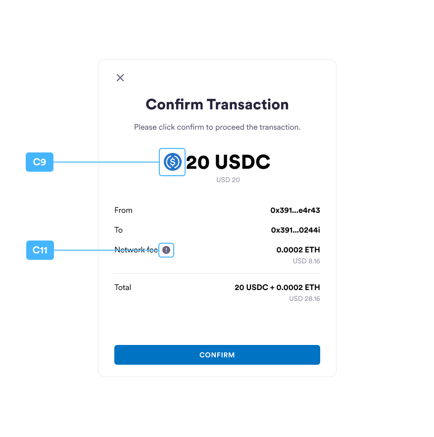| N11 | networkFee | Network fee value E.g. 0.005 ETH |